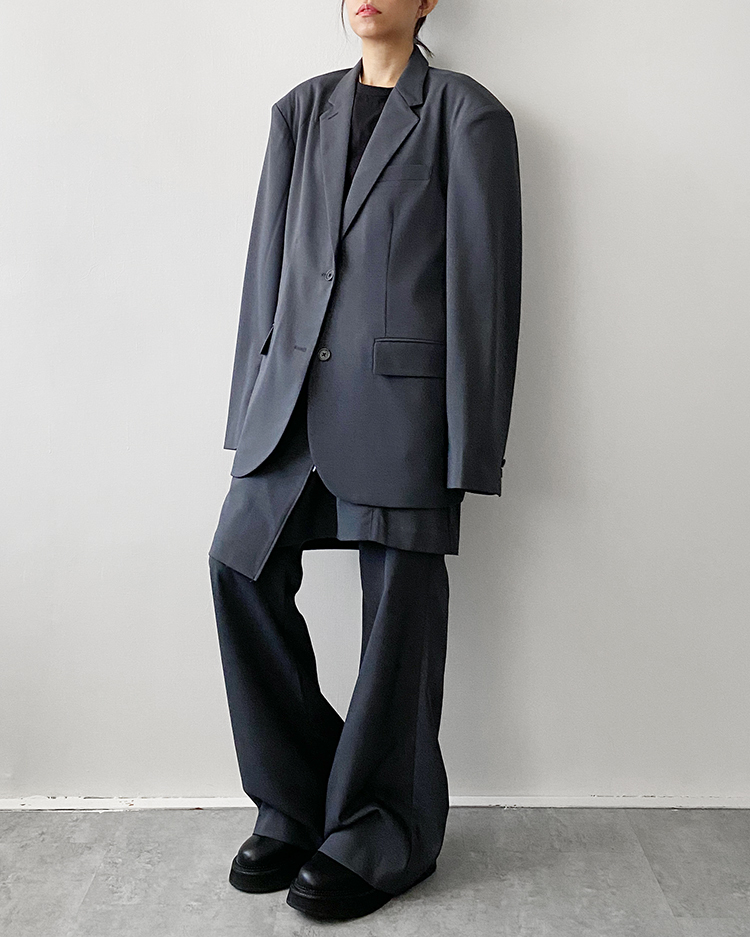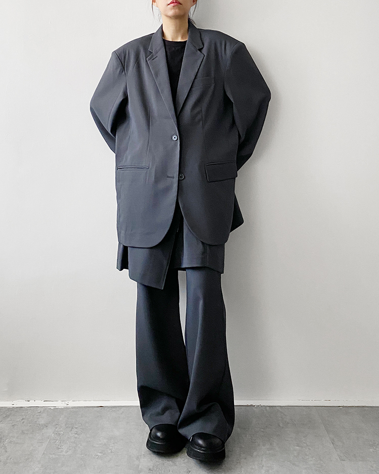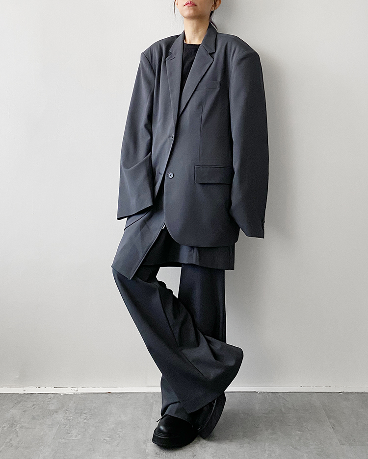 ☞ 聚脂纖維材質無彈性,偏薄料西裝外套